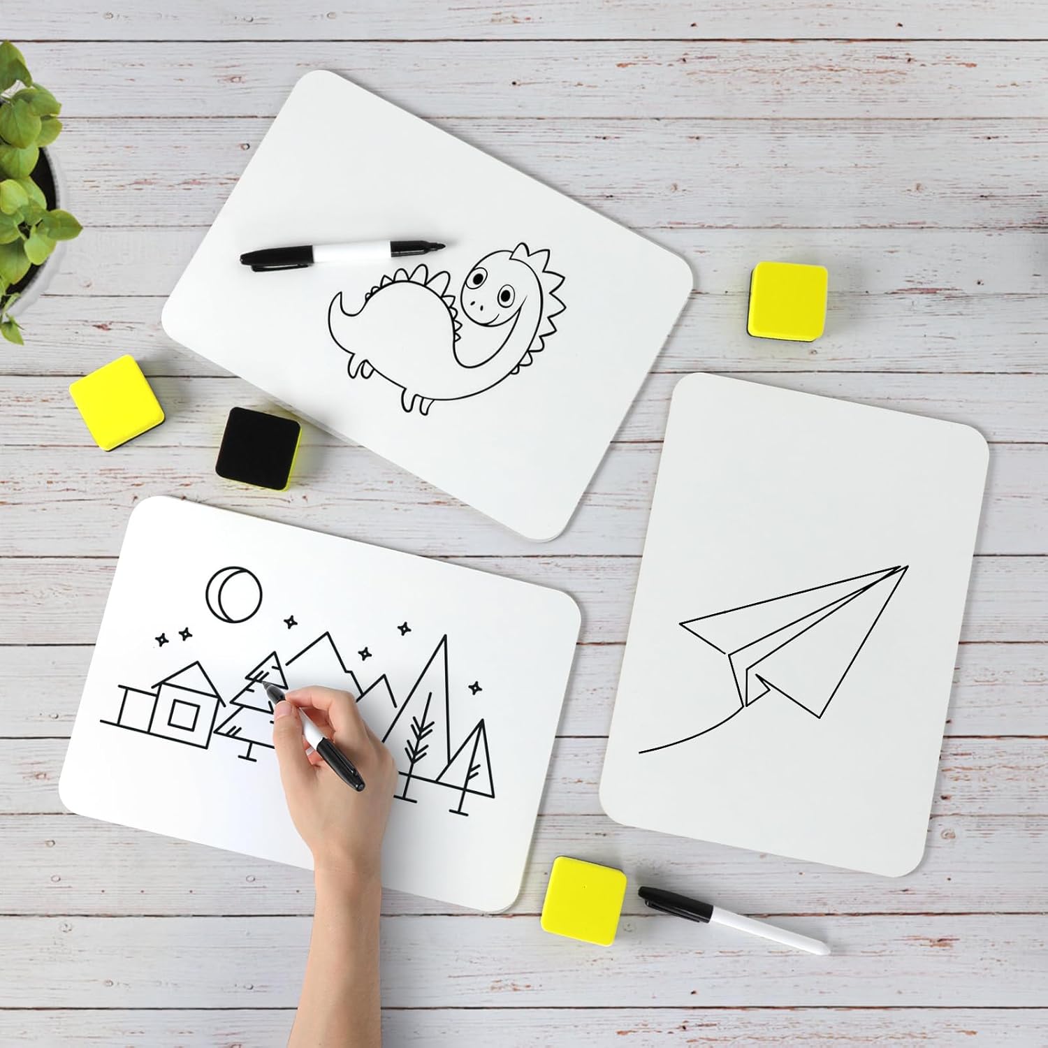 The HERKKA 25 Pack Double Sided Dry Erase Lapboards are the perfect addition to any classroom or home office. Measuring 9 x 12.5 inches, these small dry erase boards are perfect for students of all ages.