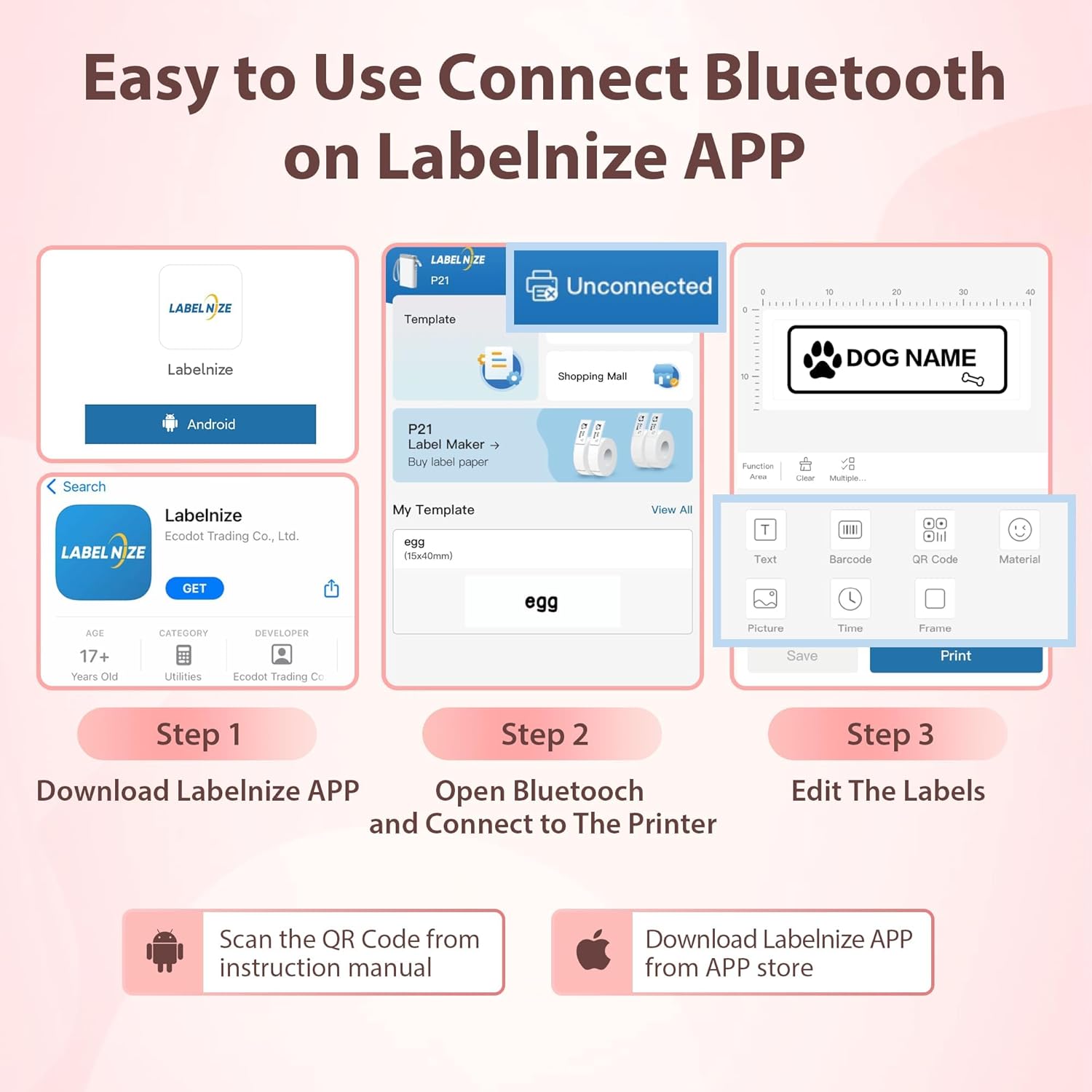 Be the first to review “P21 Label Maker Machine with Tape, Bluetooth Label Printer Thermal Mini Label Makers with Built-in Cutter and Multiple Templates, Portable Printers for School, Office, Home Use (Pink)”