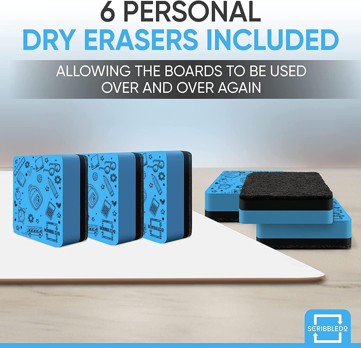 Scribbledo 6 Pack Small White Board Dry Erase Classroom Pack Boards 9″x12” Personal Whiteboards for Students Teachers School Supplies Lapboards l 6 Mini Whiteboard Erasers Included