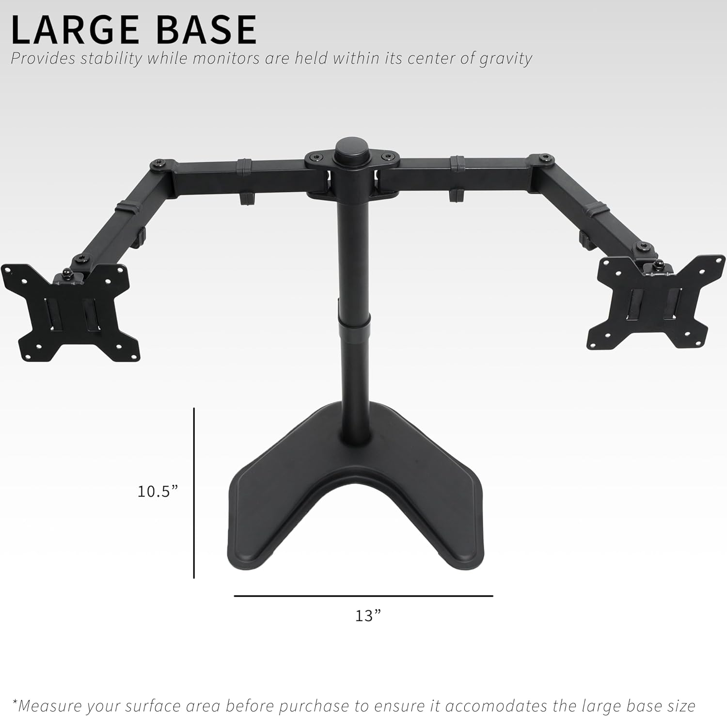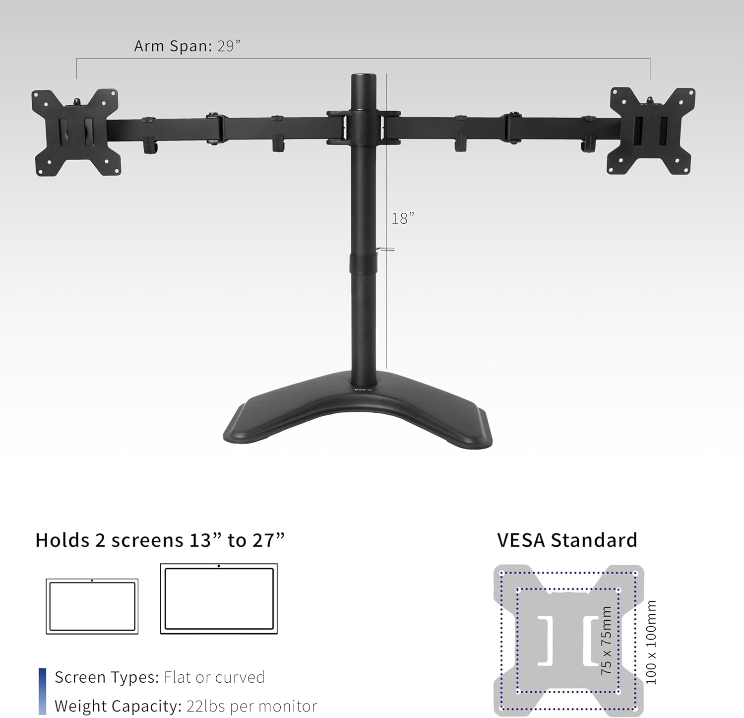 The fully adjustable arms of the stand can be easily customized to fit your specific needs, with a max VESA 100x100mm mounting pattern for a secure and stable setup. This stand is ideal for gamers, designers, programmers, and anyone who needs a reliable and versatile monitor mounting solution.