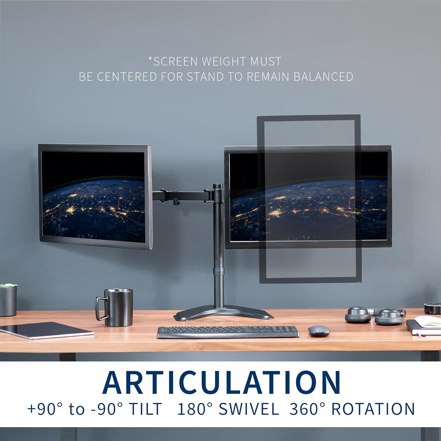 VIVO STAND-V002F Dual LED LCD Monitor Free-Standing Desk Stand for 2 Screens up to 27 Inch Heavy-Duty Fully Adjustable Arms with Max VESA 100x100mm